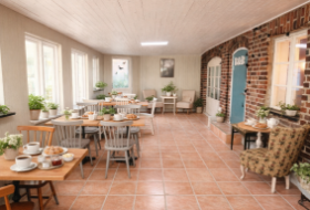Välj att sitta i vår cafedel, orangeriet eller på vår härliga utegård.